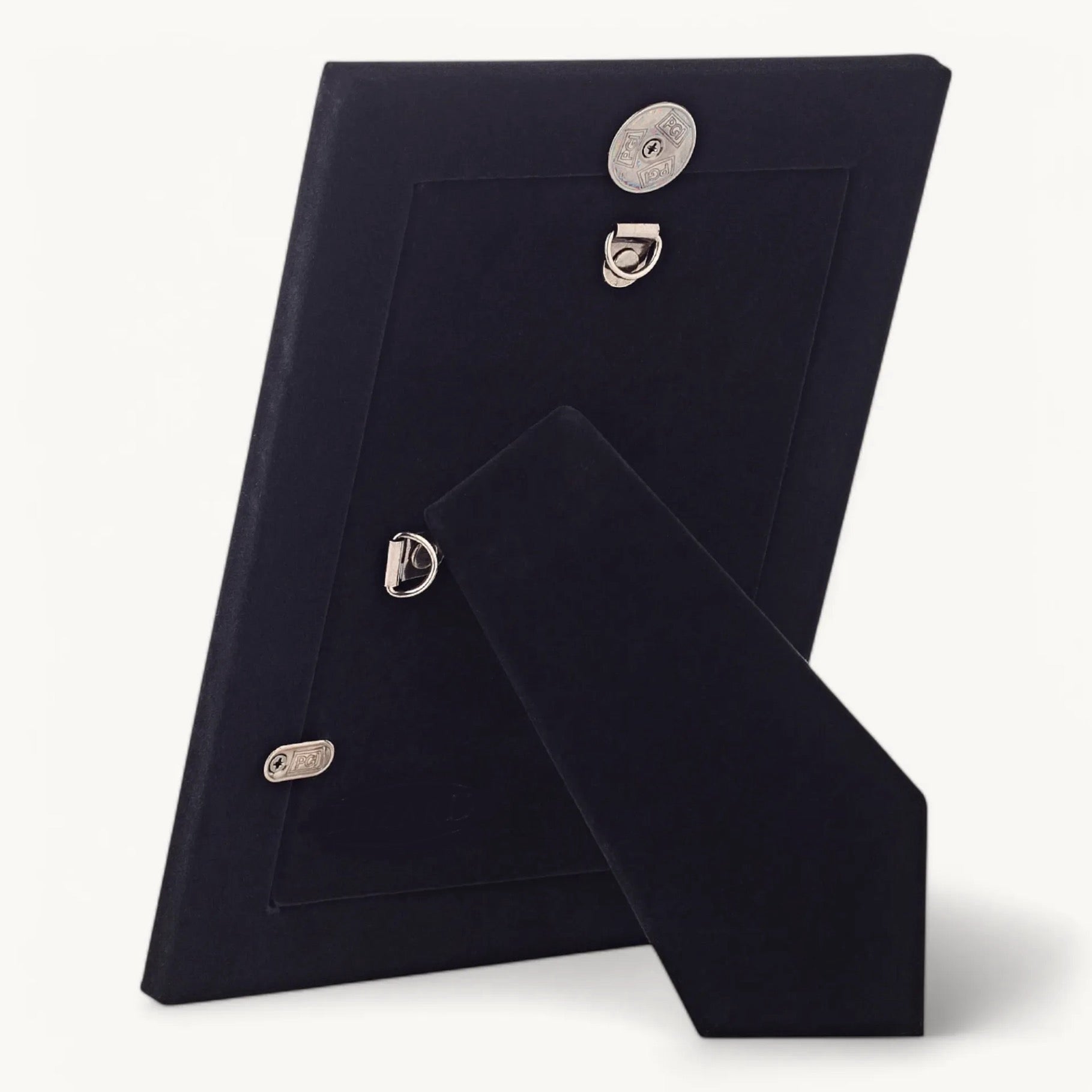 Conçu pour accueillir une photo 20 x 25cm, ce cadre haut de gamme est doté d’un dos en velours et d’une protection anti-ternissement, garantissant une brillance durable sans entretien contraignant. Polyvalent, il peut être posé ou accroché au mur, en format portrait ou paysage.