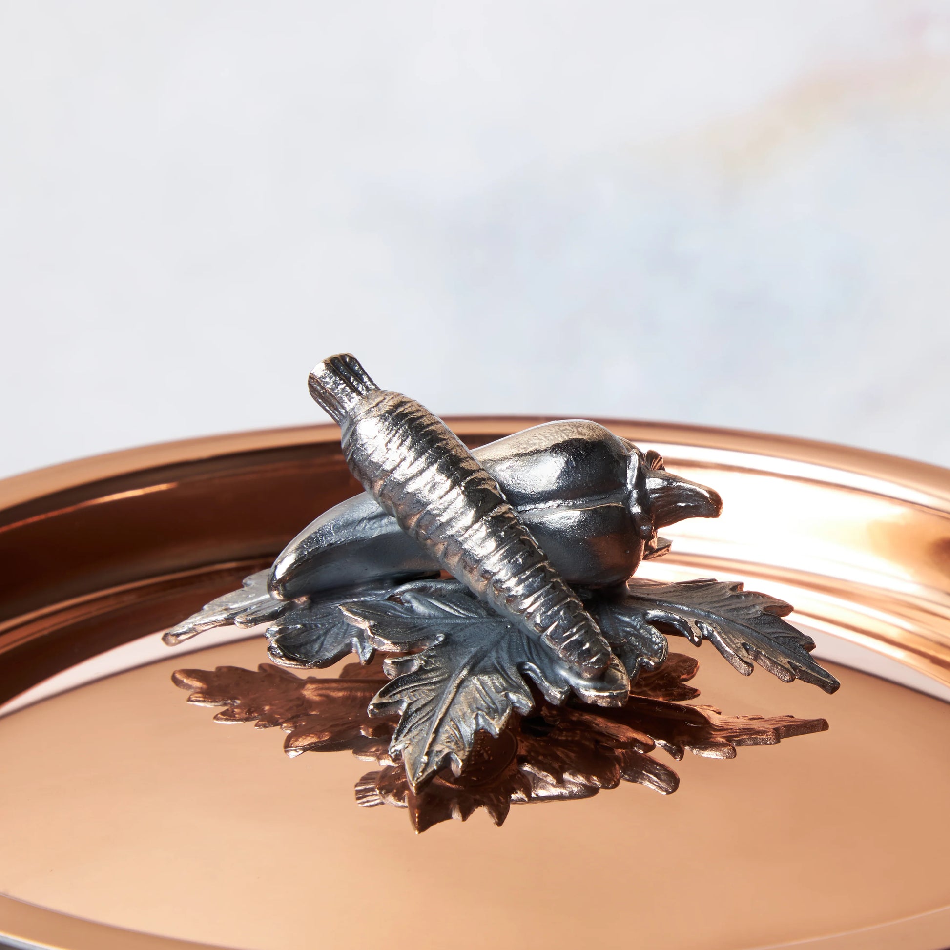Couronné d'un embout argenté en forme de carotte et de poivron.