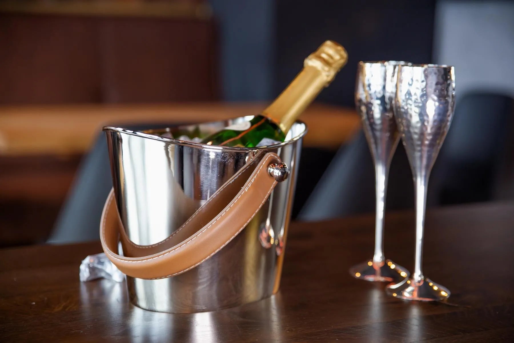 Grand Seau à glace anse en cuir Marron - Gilbert