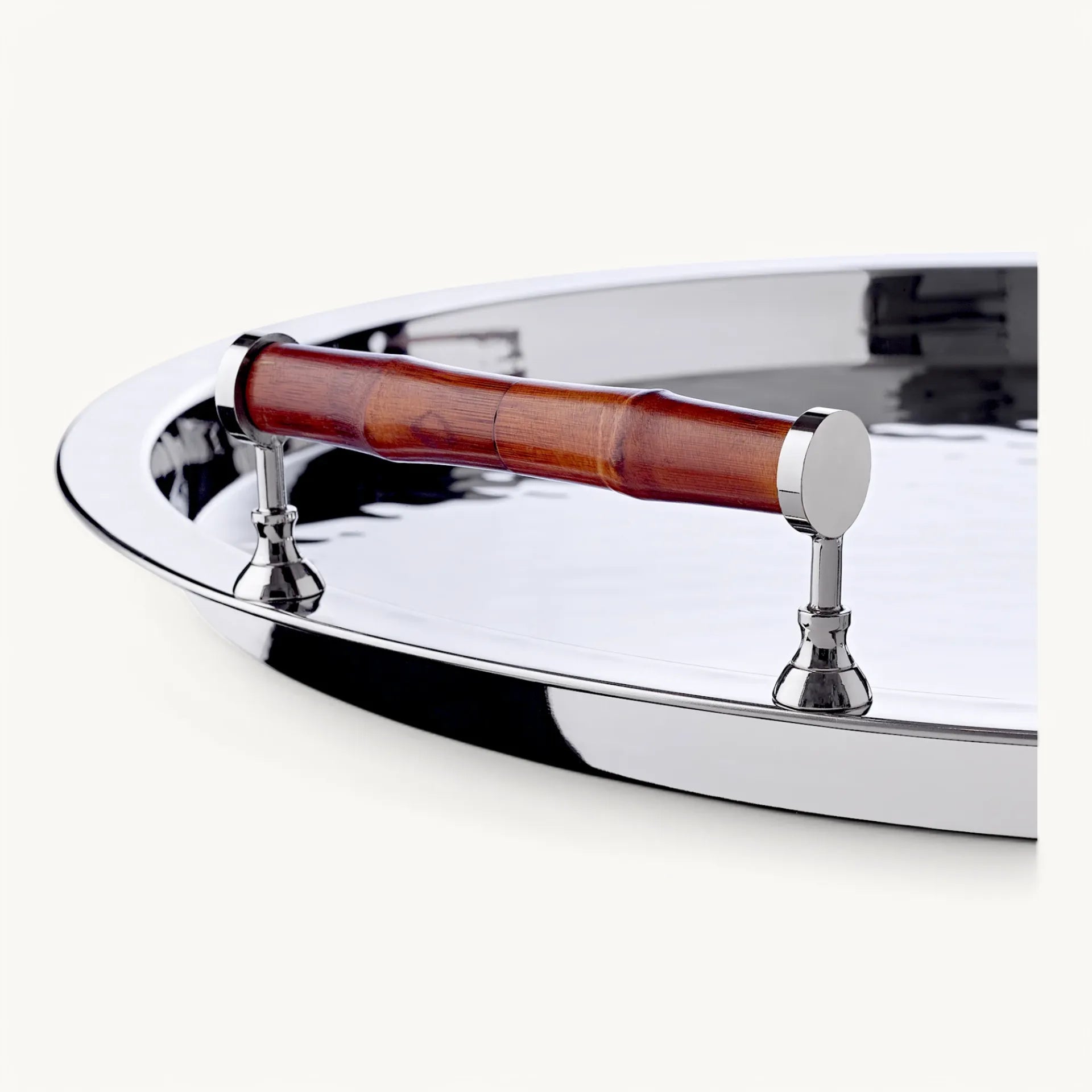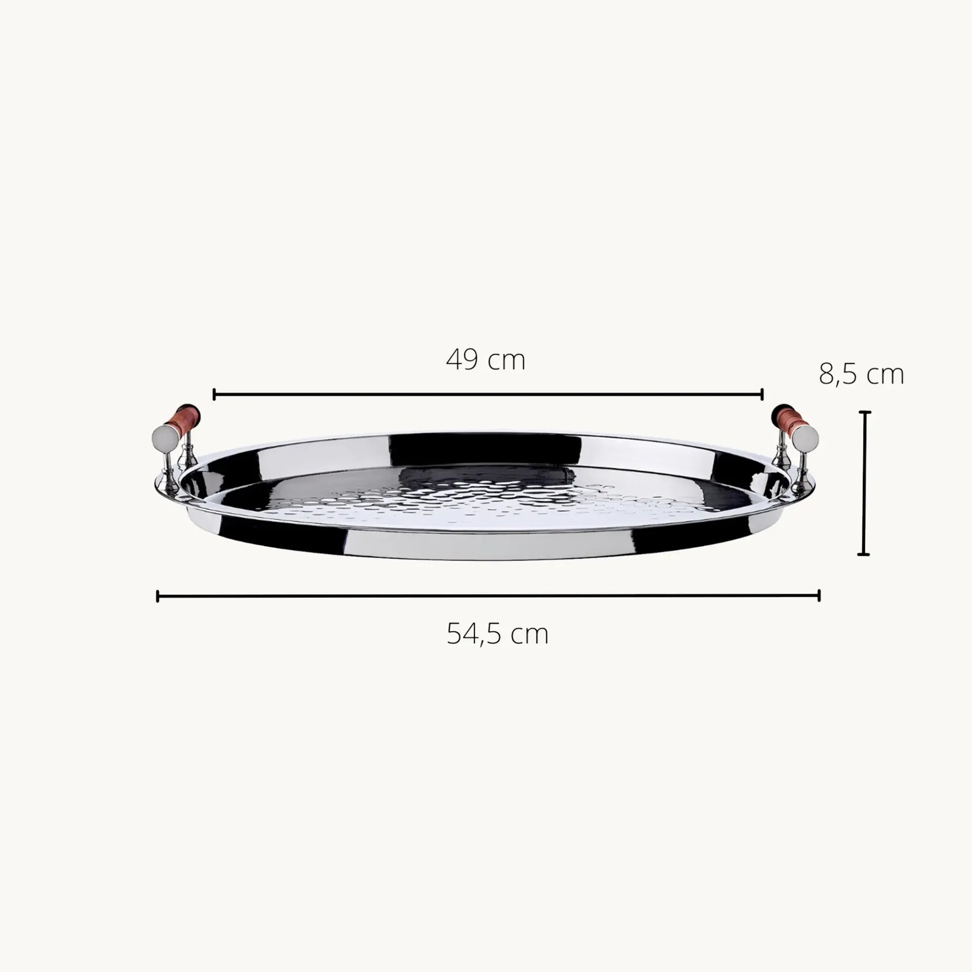 Avec sa finition nickelée et son design intemporel, ce plateau rond incarne le parfait équilibre entre fonctionnalité et esthétisme.