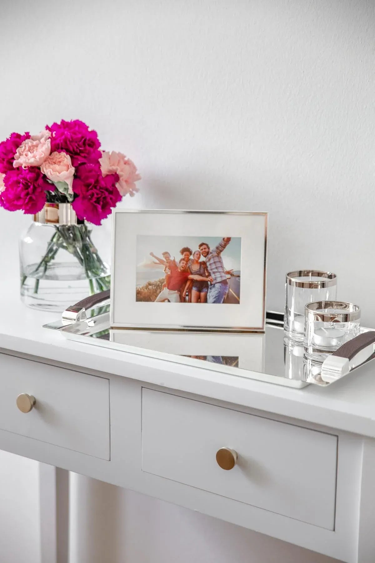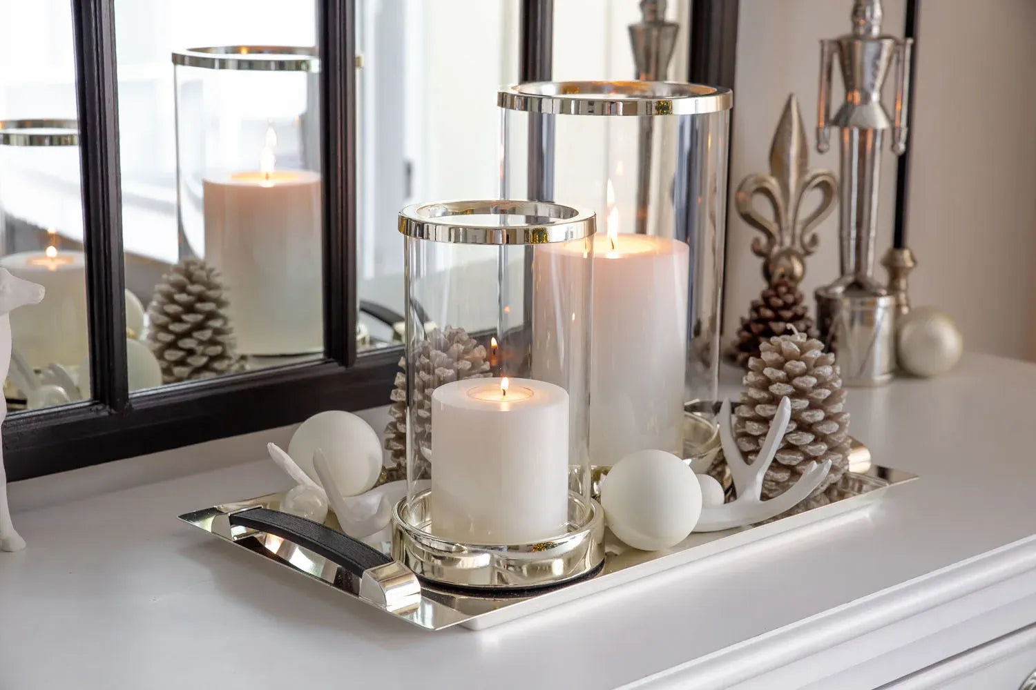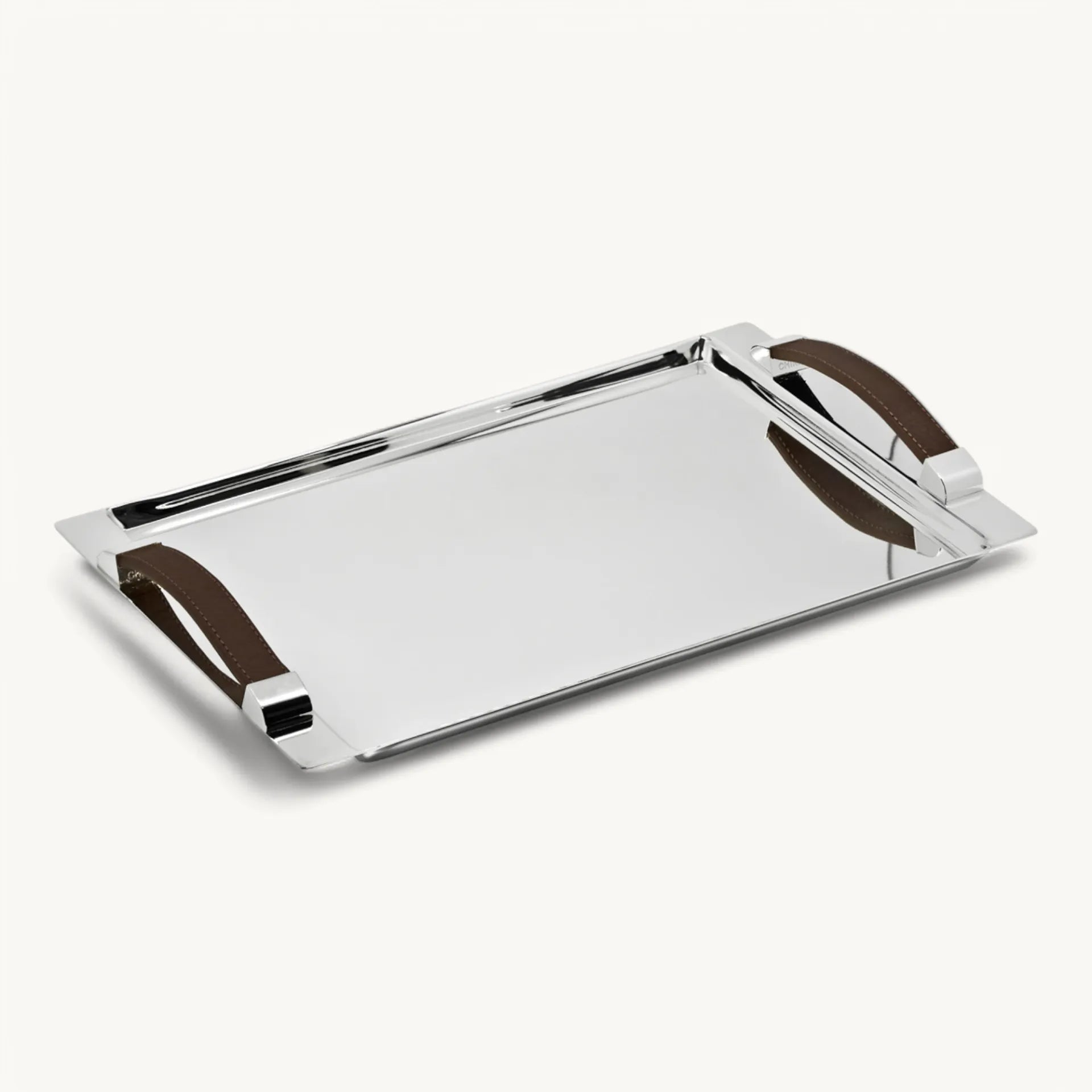 Plateau Victoria Plaqué Argent – Poignées Simili-Cuir