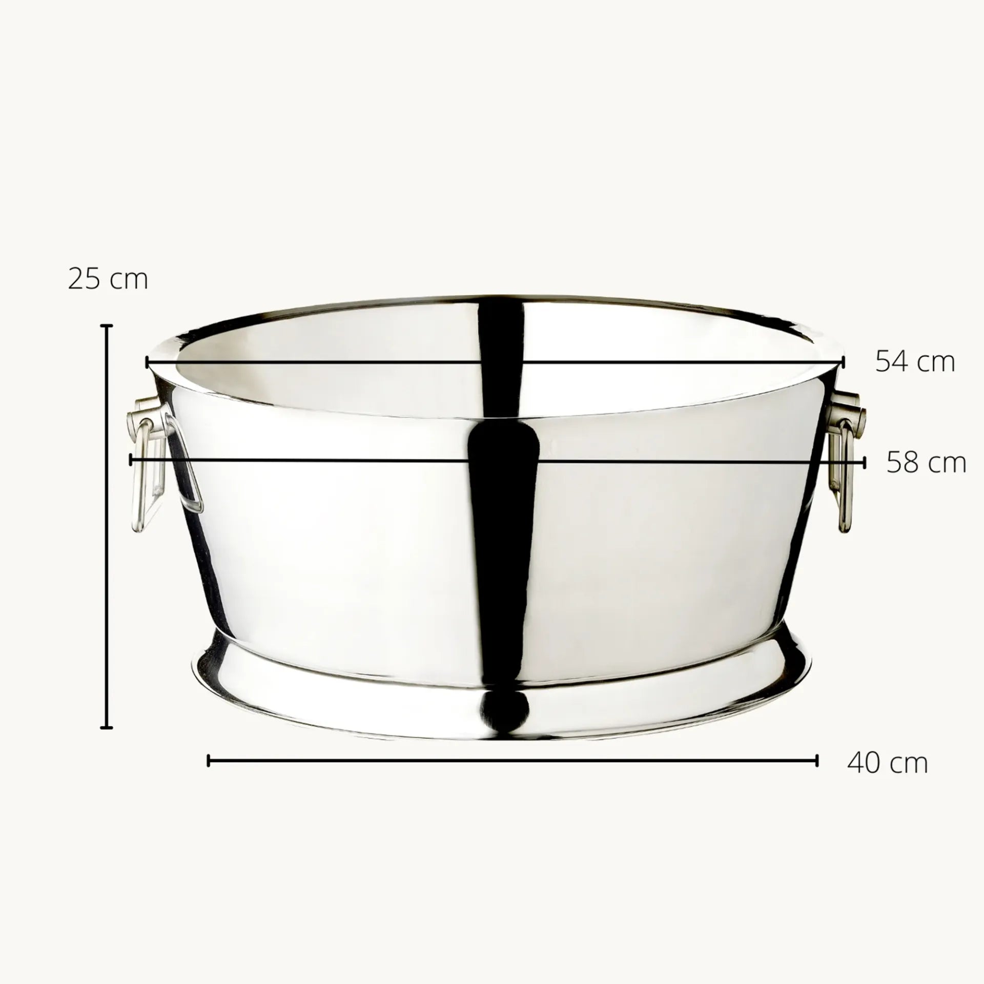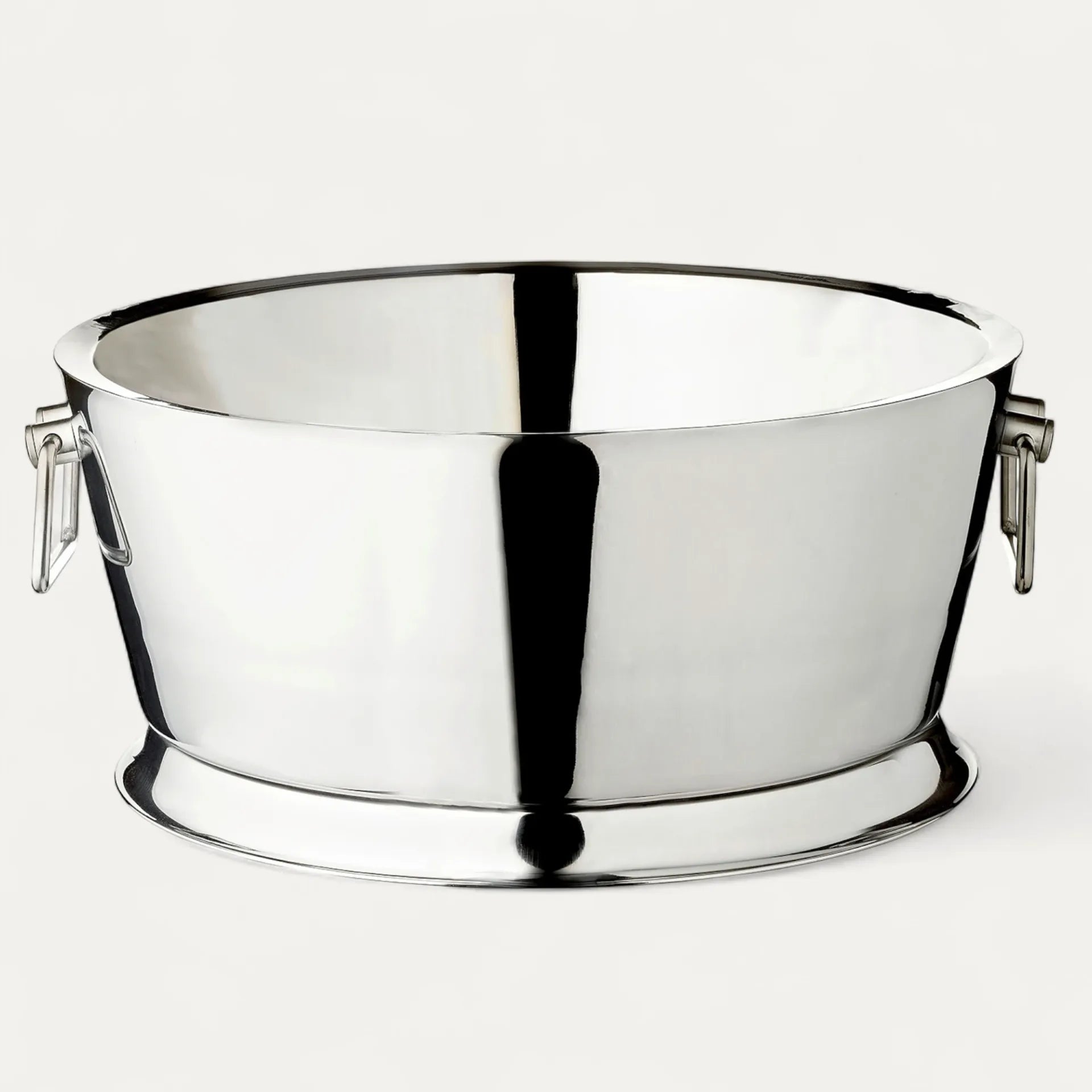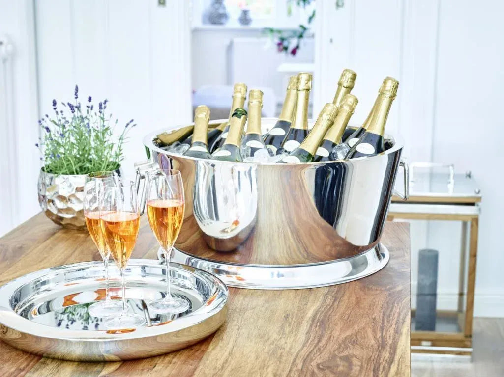 Digne des plus grands hôtels, ce vaste seau à champagne en inox poli miroir maintient durablement vos bouteilles au frais grâce à sa double paroi isolante. Avec sa capacité généreuse (jusqu’à 11 bouteilles), ses poignées robustes et son éclat sophistiqué, il sublime le service du champagne, du vin ou des cocktails lors de chaque réception. Polyvalent, durable et facile d’entretien : l’indispensable des fêtes élégantes, à l’intérieur comme en extérieur.