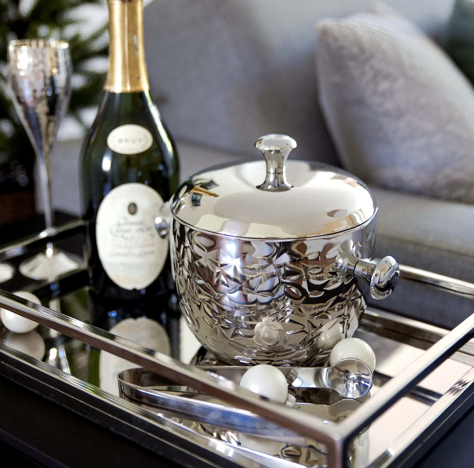 Ajoutez une touche de prestige à vos soirées cocktails avec ce seau à glace en inox hautement poli, orné d’un motif raffiné. Grâce à sa double paroi isolante et à son couvercle, il garde les glaçons parfaitement frais pendant des heures. Livré avec sa pince assortie, il allie esthétisme et fonctionnalité pour sublimer chaque boisson. Un indispensable chic pour la maison, le bar ou en cadeau.