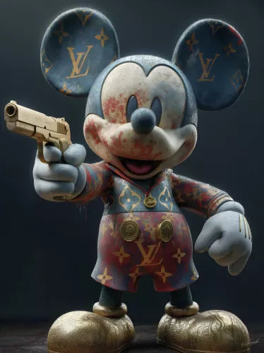 Affirmez votre style avec ce tableau Pop Art audacieux de 60 x 80 cm, véritable pièce d’art contemporain au caractère fort. Représentant une souris iconique réinterprétée dans un univers urbain et provocateur, cette œuvre joue sur les contrastes entre innocence et puissance, luxe et subversion.