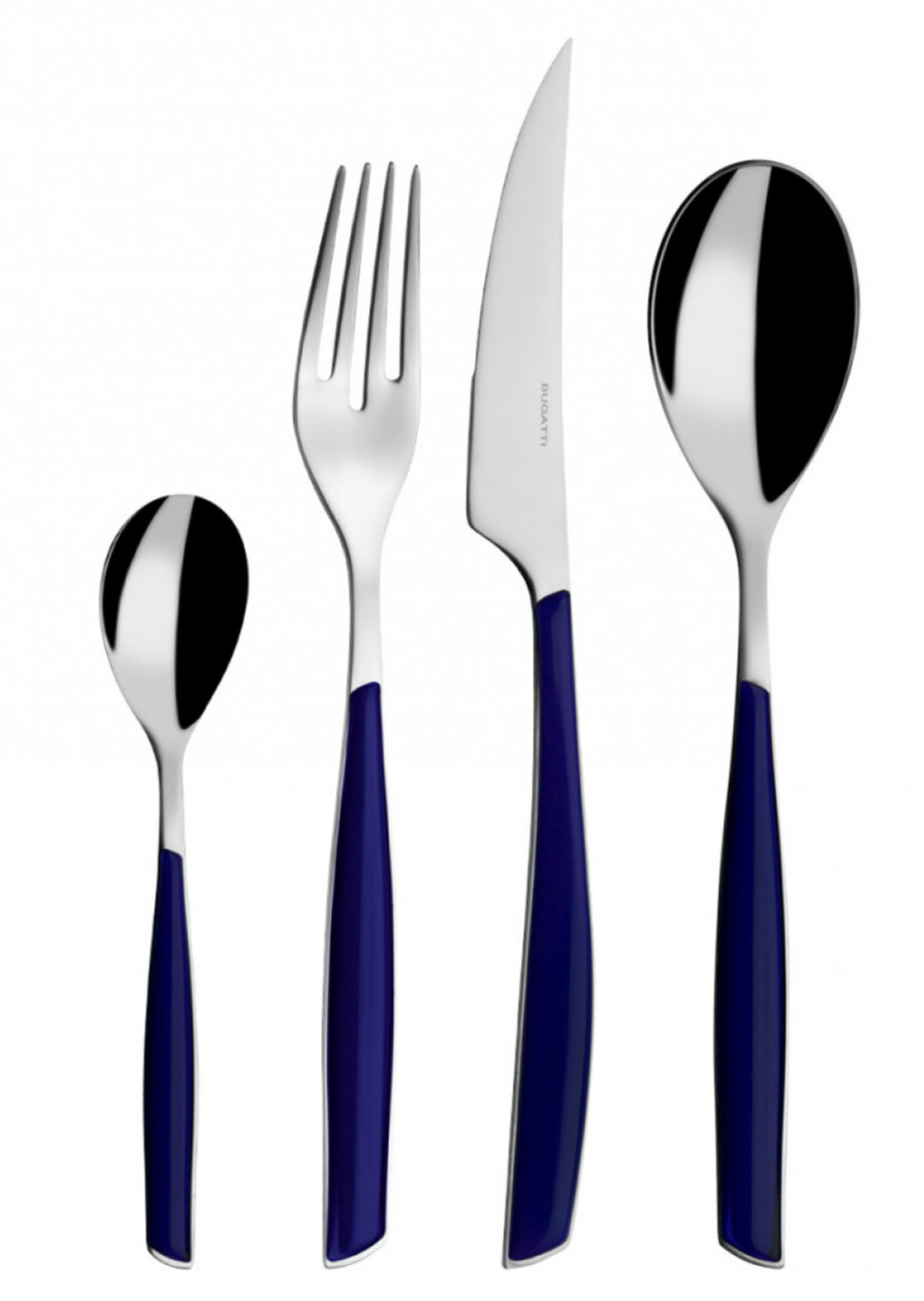 Les couverts colorés Glamour sont le fleuron de Bugatti, un choix contemporain et à la mode pour colorer votre table avec le style que vous aimez, sans jamais renoncer aux performances. Ils sont fabriqués en acier inoxydable 18/10 avec un manche en SAN réalisé avec la technologie à double moulage Bugatti Pro-Tech System qui donne à la couleur un effet transparent et toujours brillant. Ils sont lavables au lave-vaisselle.
