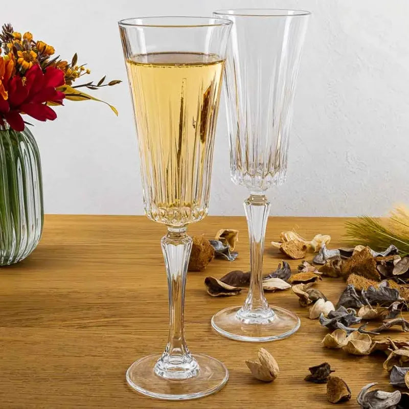 flûte en cristal taillés dans toute leur élégance avec un style intemporel. On y retrouve tout le savoir faire de l'Artisan du Cristal à travers un décor à la fois Moderne et Traditionnel.